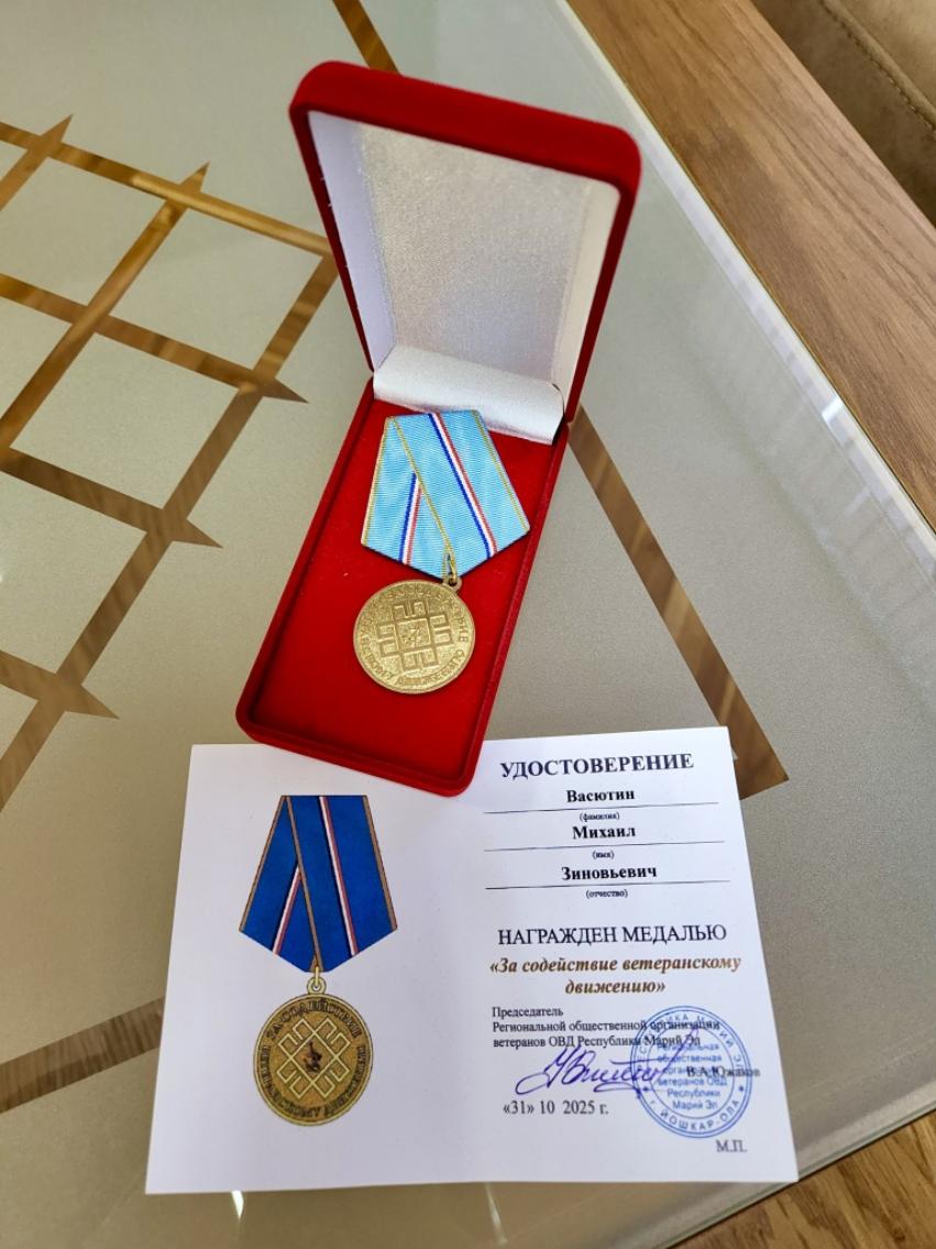 В начале заседания состоялась торжественная церемония. Председатель Региональной общественной организации ветеранов органов внутренних дел Республики Марий Эл Виталий Южаков от лица более 5 тысяч ветеранов поблагодарил Михаила Васютина за системную поддержку ветеранского движения и конструктивный диалог. За значительный личный вклад в эту работу спикер марийского парламента был награжден медалью «За содействие ветеранскому движению».