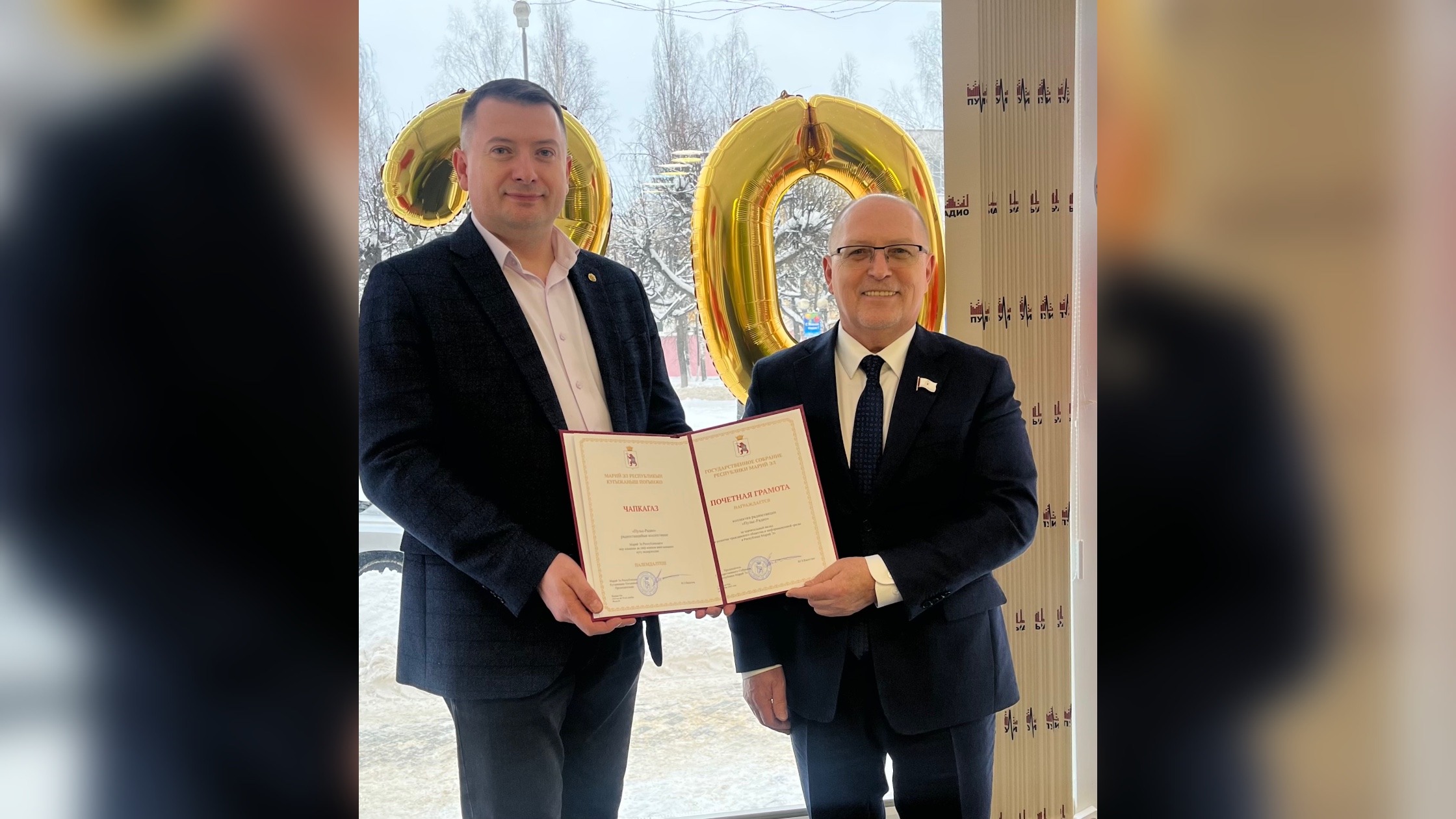 За значительный вклад в развитие гражданского общества и информационной среды в Республике Марий Эл коллектив радиостанции «Пульс-Радио» награжден высшей наградой Государственного Собрания — Почетной грамотой.
