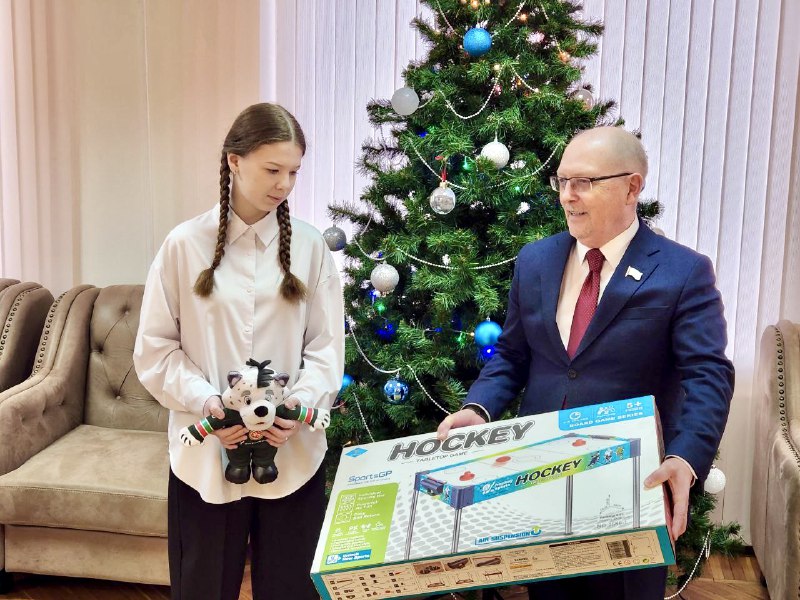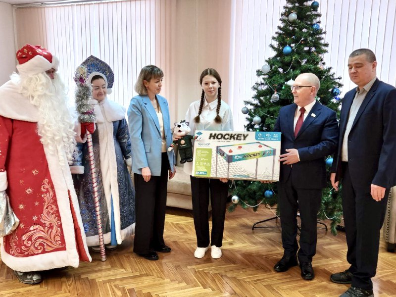 Сегодня в Государственном Собрании республики произошло по-настоящему волшебное событие. Председатель регионального парламента Михаил Васютин исполнил новогоднее желание 13-летней Ани Александровой, сняв для нее заветный шар с елки и вручив девочке долгожданный подарок – аэрохоккей.