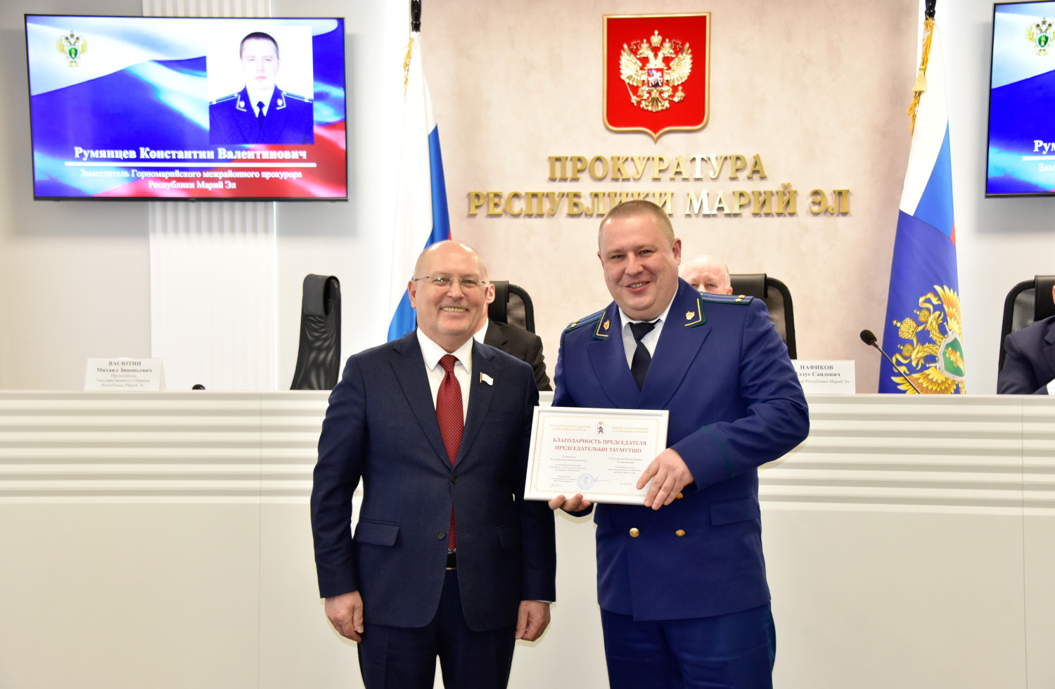 Благодарностью Председателя Государственного Собрания Марий Эл отмечен заместитель Горномарийского межрайонного прокурора Константин Румянцев.