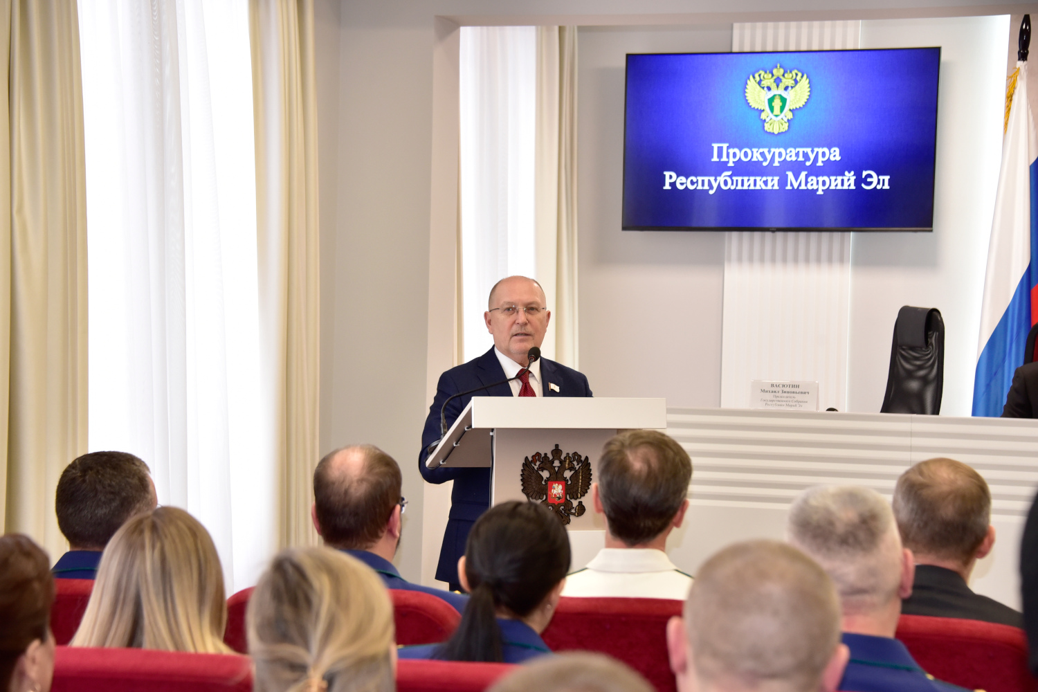 Сегодня в Йошкар-Оле состоялось торжественное мероприятие, посвященное 304-й годовщине образования российской прокуратуры. Сотрудников и ветеранов ведомства с профессиональным праздником поздравил Председатель Государственного Собрания Михаил Васютин.