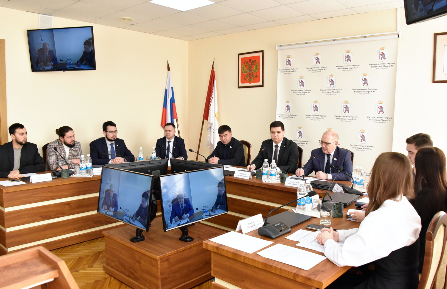 Председатель Государственного Собрания Михаил Васютин и его Заместитель, участник региональной кадровой программы "Герои Марий Эл. Талешке-влак" Александр Смирнов сегодня приняли участие в заседании Президиума Молодежного парламента Республики Марий Эл.