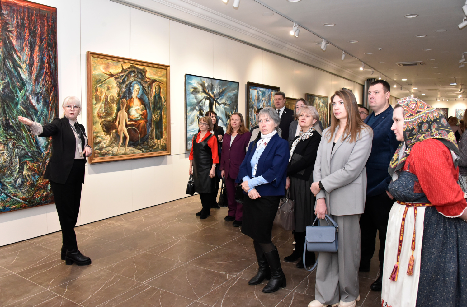 Перед началом Дня депутата участники ознакомились с выставкой Заслуженного художника России и Марий Эл Ивана Ямбердова, а также с экспресс-выставкой национальных костюмов из фондов Национального музея имени Т. Евсеева.
