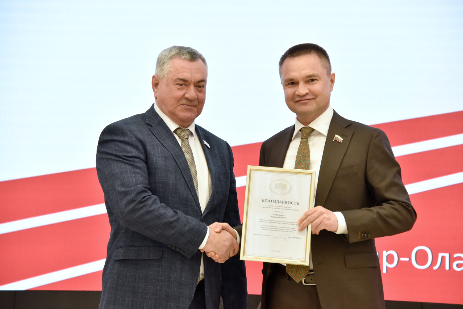 Благодарностью Комитета Государственной Думы по строительству и жилищно-коммунального хозяйства награжден депутат Госсобрания Марий Эл восьмого созыва Руслан Муталиев.