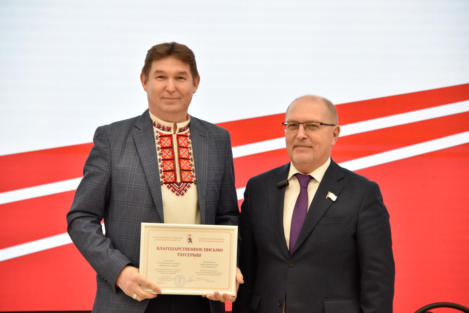 Благодарностью законодательного органа поощрен Мусаниф Моллачиев, Благодарностью Председателя Государственного Собрания – Иван Ямбердов, благодарственными письмами марийского парламента – коллективы ГАУК "Марий Эл Телерадио", Республиканского центра марийской культуры и ансамбля народной песни "Тулгайык" ("Жар-птица").