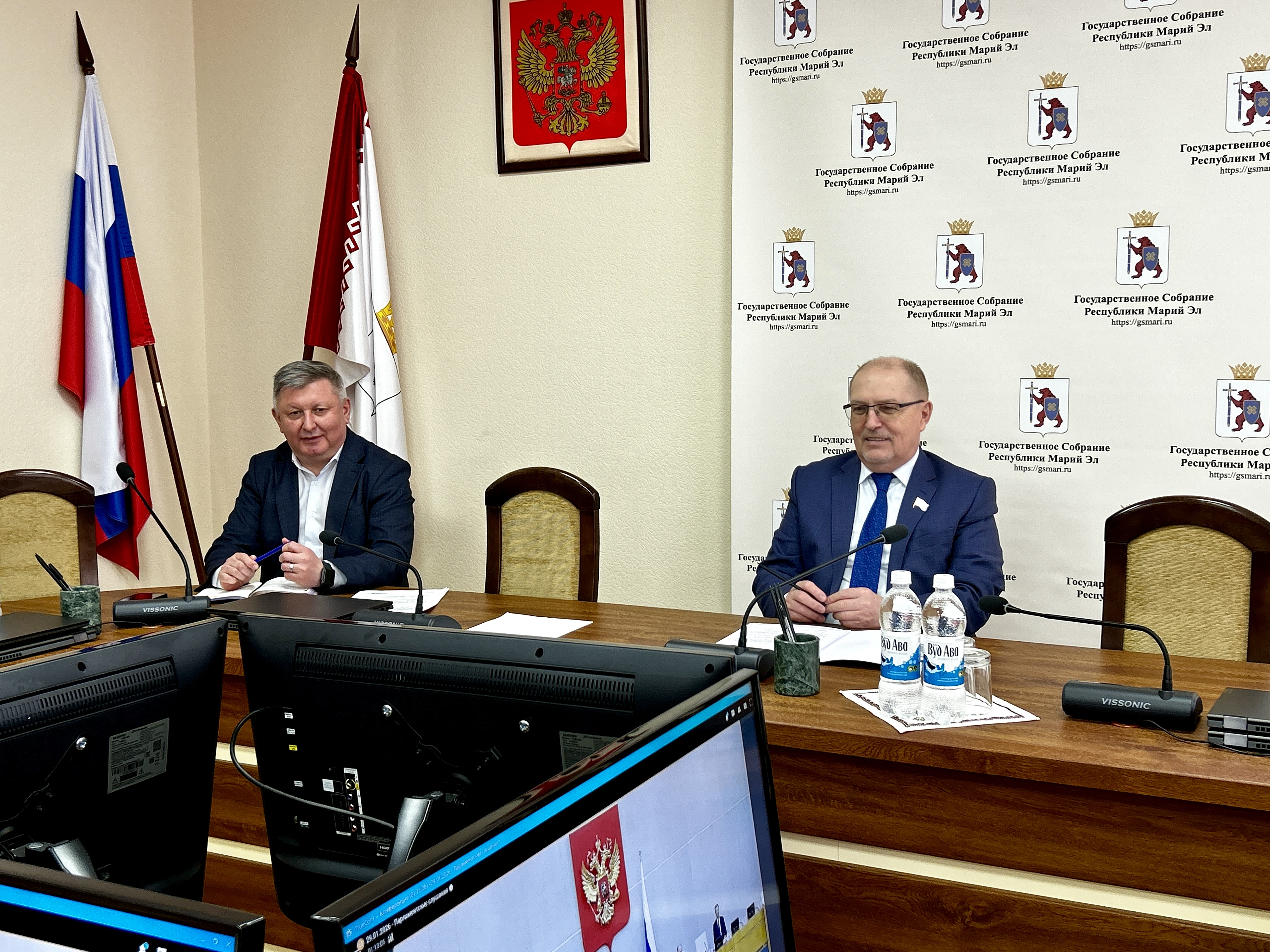 К дискуссии в режиме видео-конференц-связи присоединились Председатель Государственного Собрания Михаил Васютин и заместитель министра промышленности, экономического развития и торговли республики Игорь Макаров.