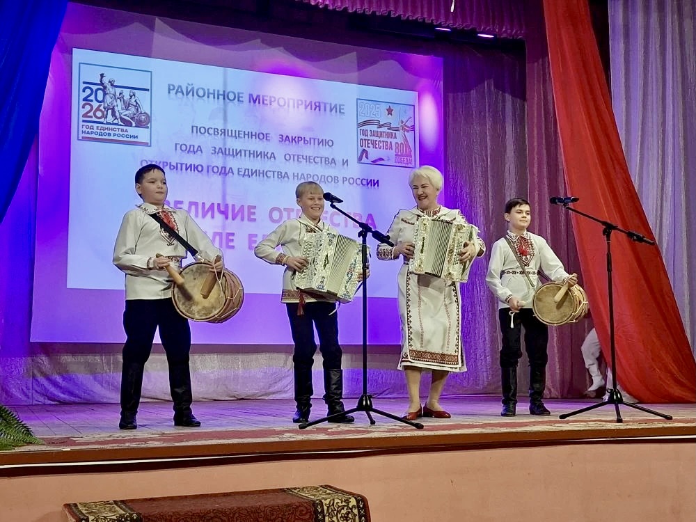 В Помарском районном доме культуры прошло знаковое мероприятие, объединившее сразу два события – торжественное закрытие Года защитника Отечества и официальный старт Года единства народов России в Волжском муниципальном округе.