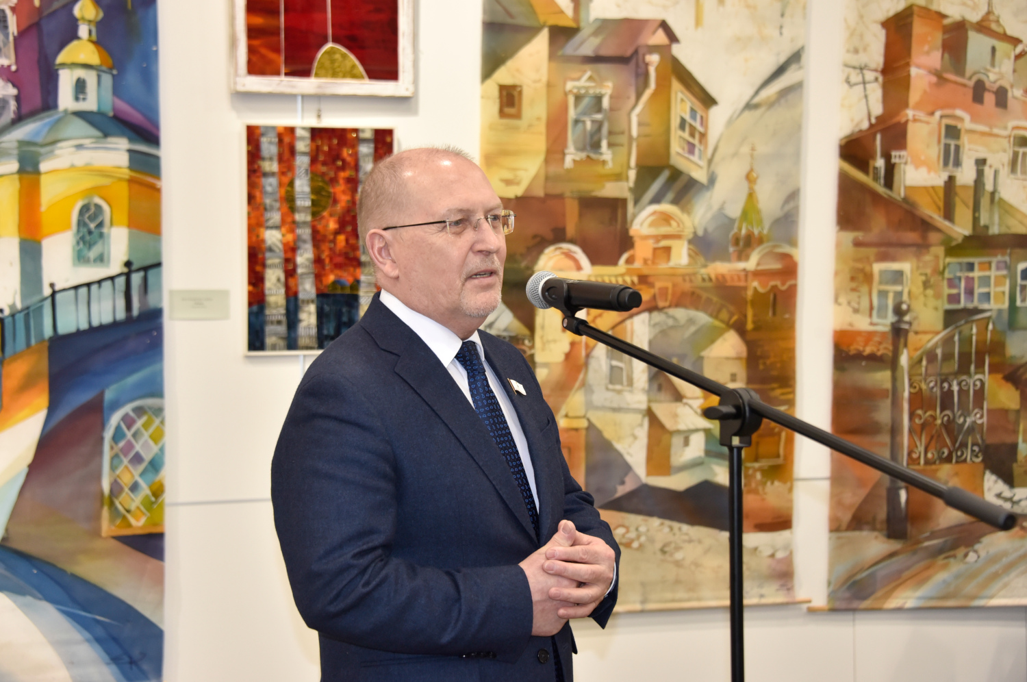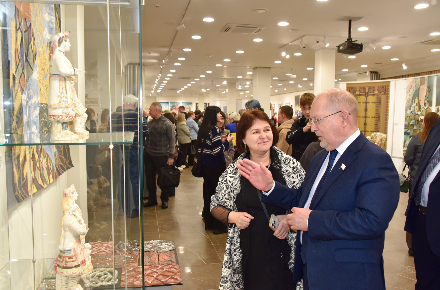 «Искусство обладает удивительной способностью объединять людей. Выставка "Широка страна моя родная!" – яркое тому подтверждение. Она не только знакомит жителей и гостей нашей республики с высокими образцами современного декоративного творчества, но и служит напоминанием о нашем культурном многообразии и единстве. Отрадно, что традиции народных промыслов, бережно хранимые мастерами, обретают новую жизнь в уникальных работах, отражая красоту родной земли и любовь к Родине», – отметил в своем выступлении Михаил Васютин.