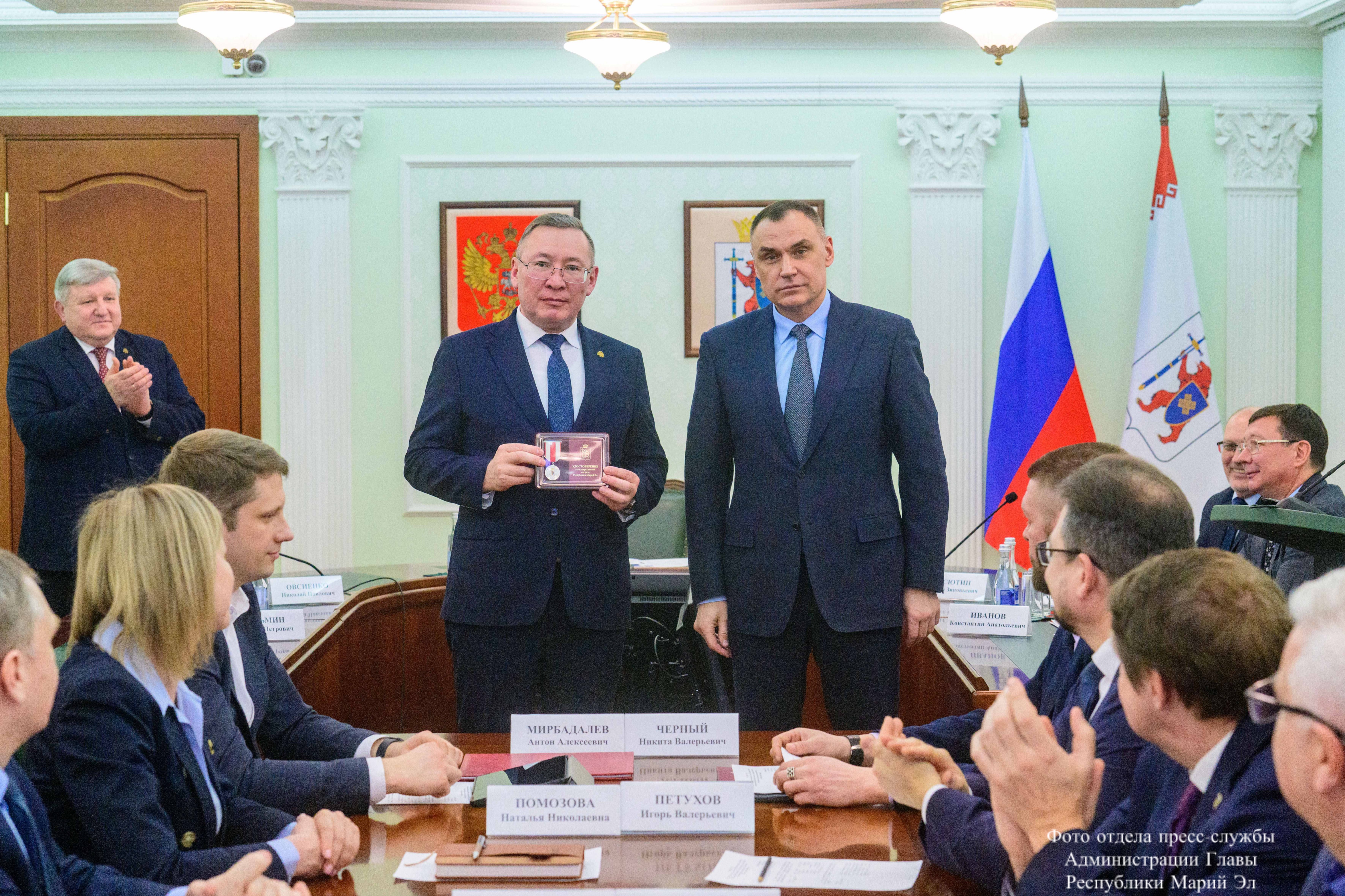 Глава Марий Эл Юрий Зайцев в свою очередь поблагодарил Николая Овсиенко за готовность оказать поддержку в присвоении Йошкар-Оле почетного звания «Город трудовой доблести».