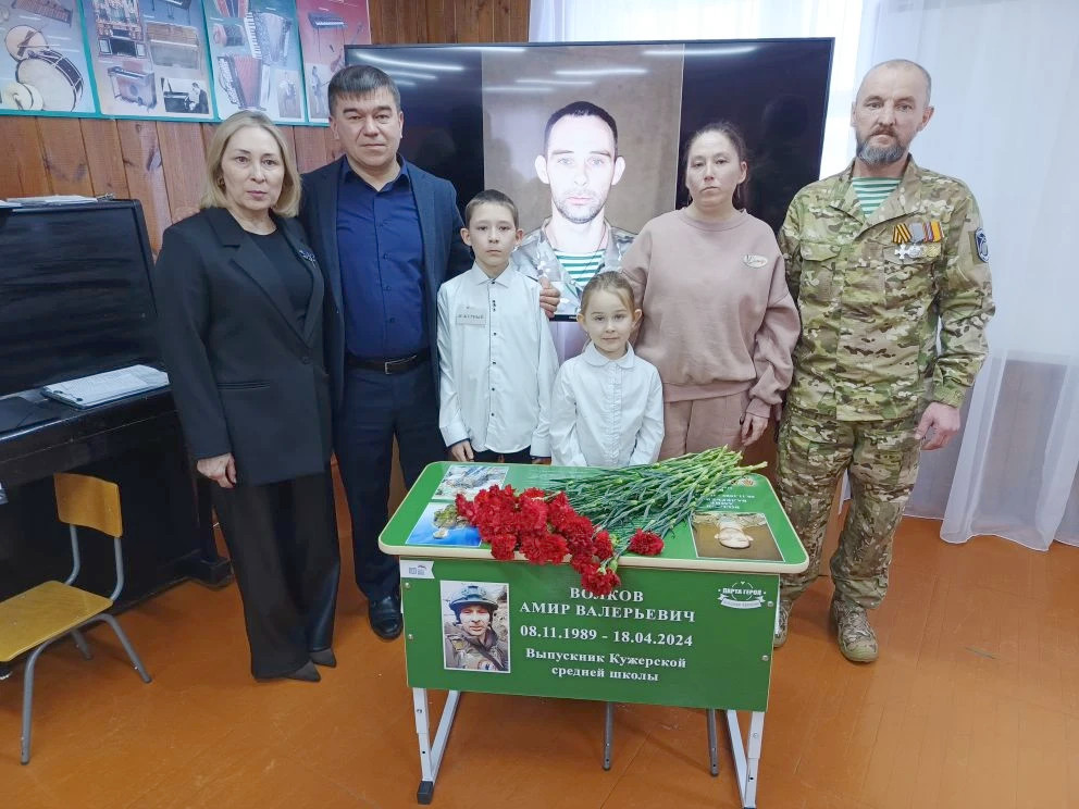 Сегодня, в преддверии Дня защитника Отечества, в Кужерской основной общеобразовательной школе Моркинского района состоялась торжественная церемония открытия «Парты Героя» в честь младшего сержанта Амира Валерьевича Волкова, погибшего при исполнении воинского долга в ходе специальной военной операции.