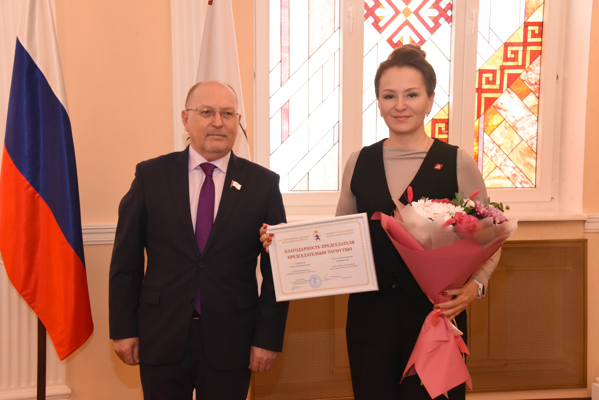 Пожелав участникам заседания конструктивной работы, Михаил Васютин вручил благодарственные письма Госсобрания за добросовестный труд и активную общественную деятельность члену комиссии Общественной палаты по экономическому развитию, поддержке предпринимательства и НКО Наталии Соловьевой и члену комиссии по законности и общественному контролю Ольге Самариной.