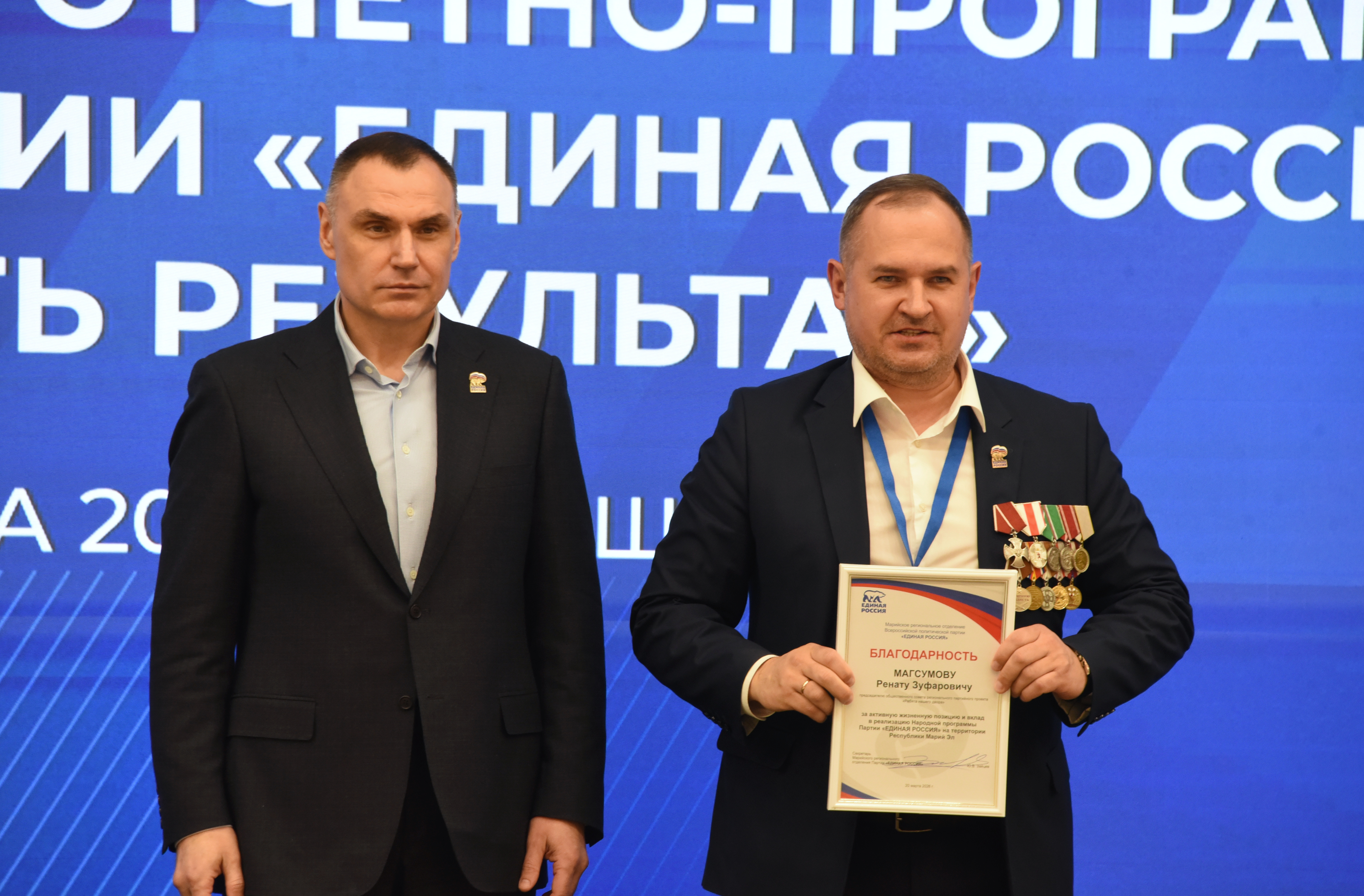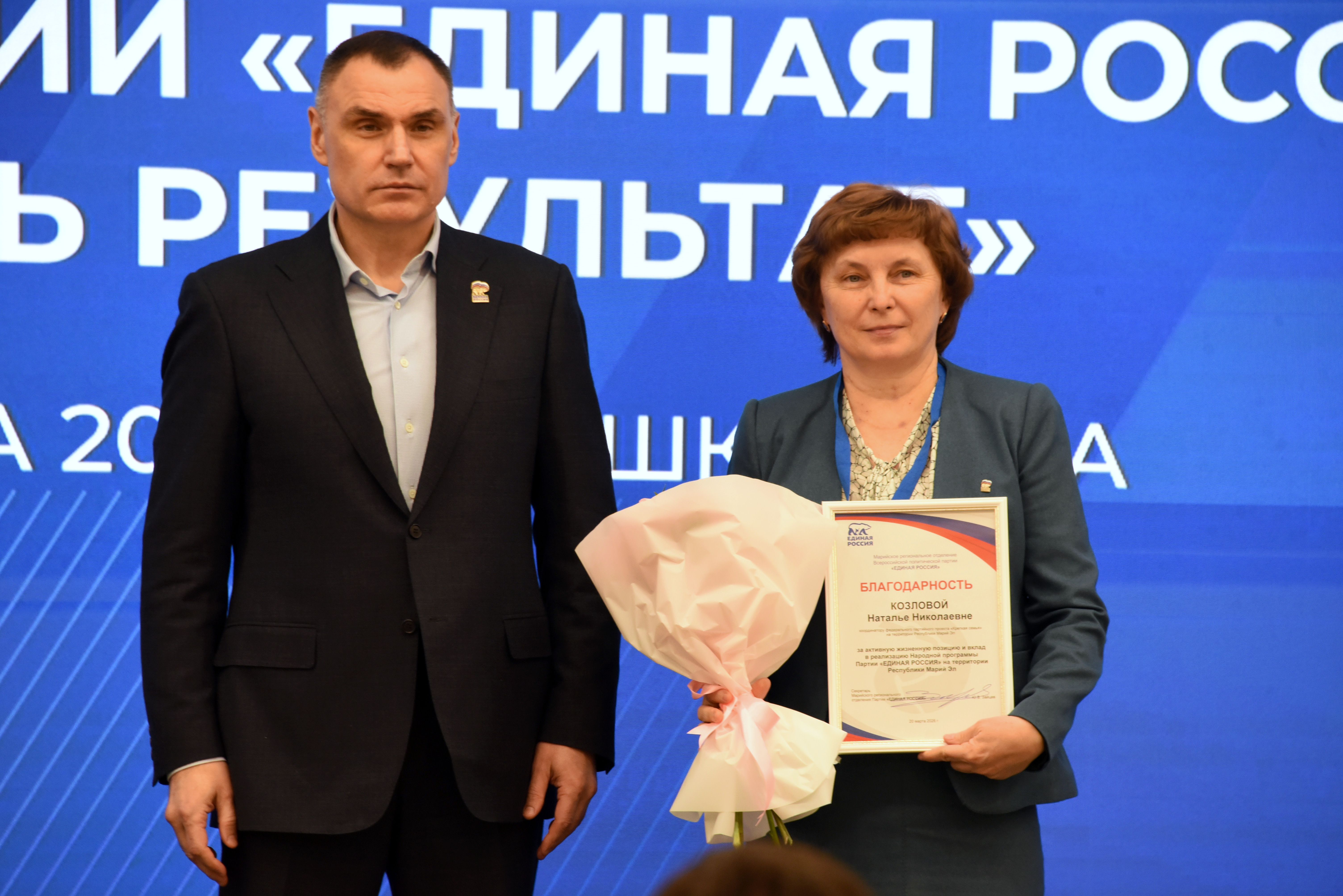 В рамках форума состоялась торжественная церемония награждения. За активную жизненную позицию и весомый вклад в реализацию Народной программы Благодарность Марийского регионального отделения Партии «Единая Россия» объявлена депутатам Государственного Собрания Наталье Козловой, Ренату Магсумову и Михаилу Швецову.