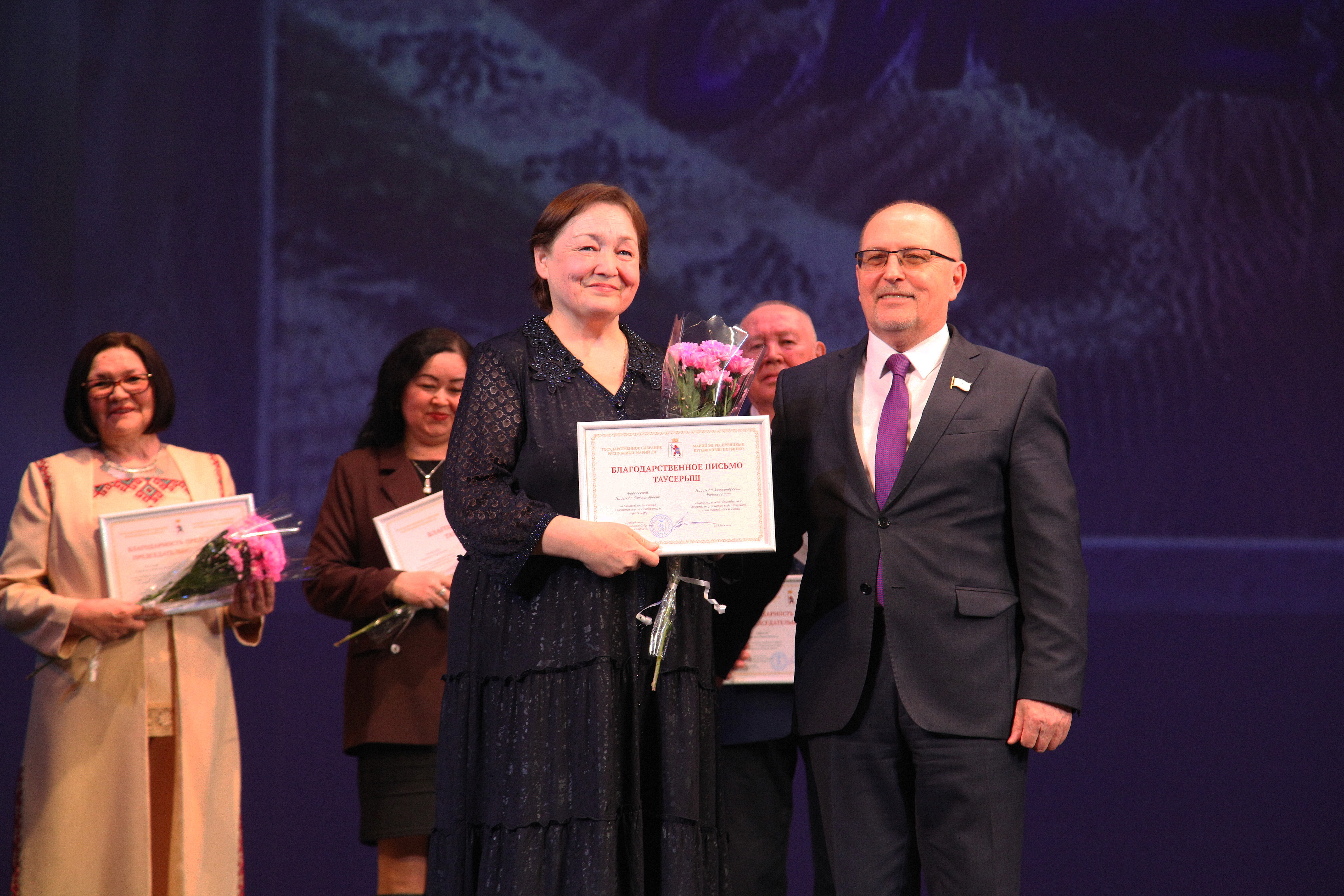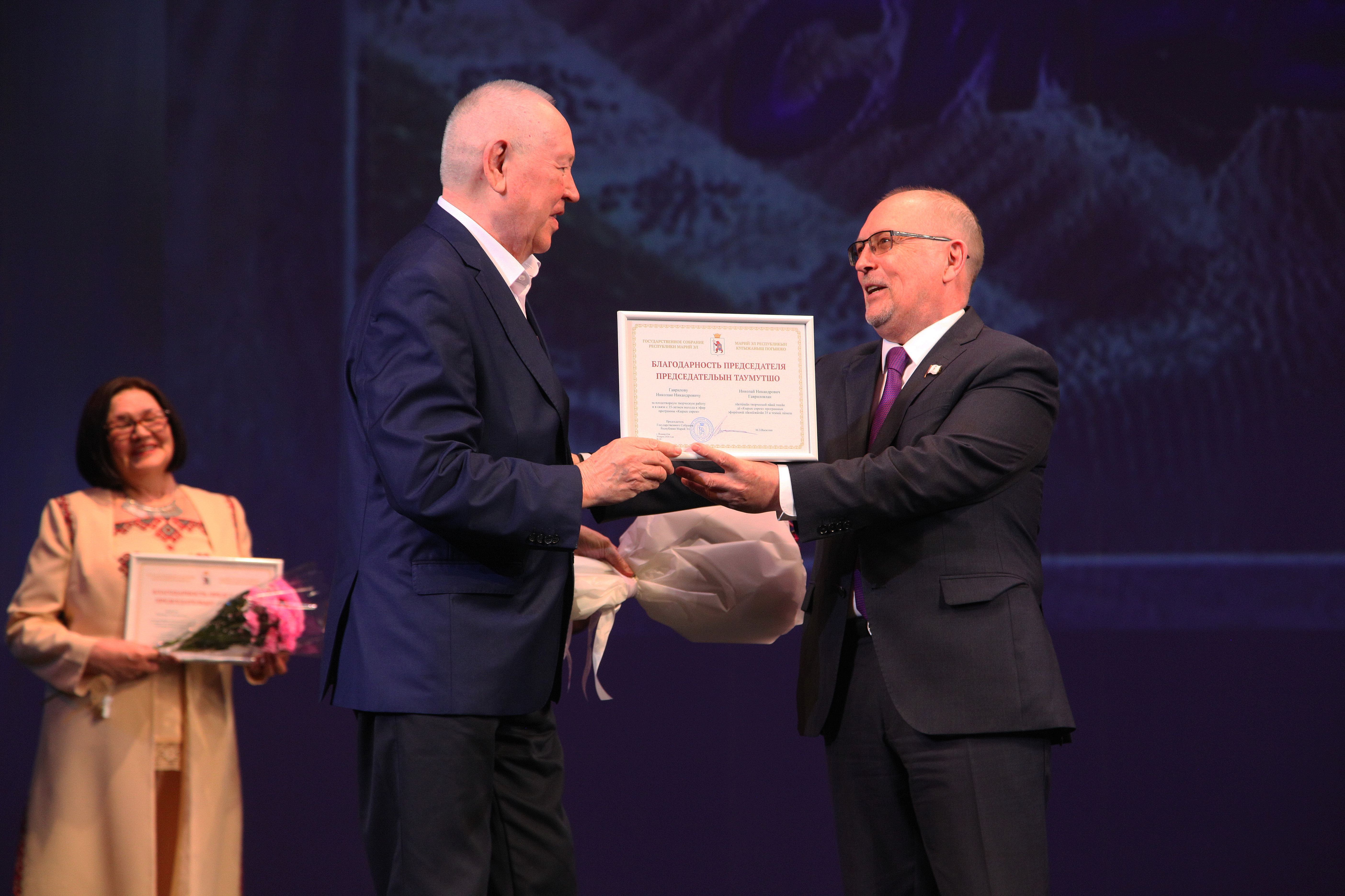 В этот день наградами законодательного органа также были поощрены непосредственные авторы и создатели горномарийской передачи «Кырык сирем».