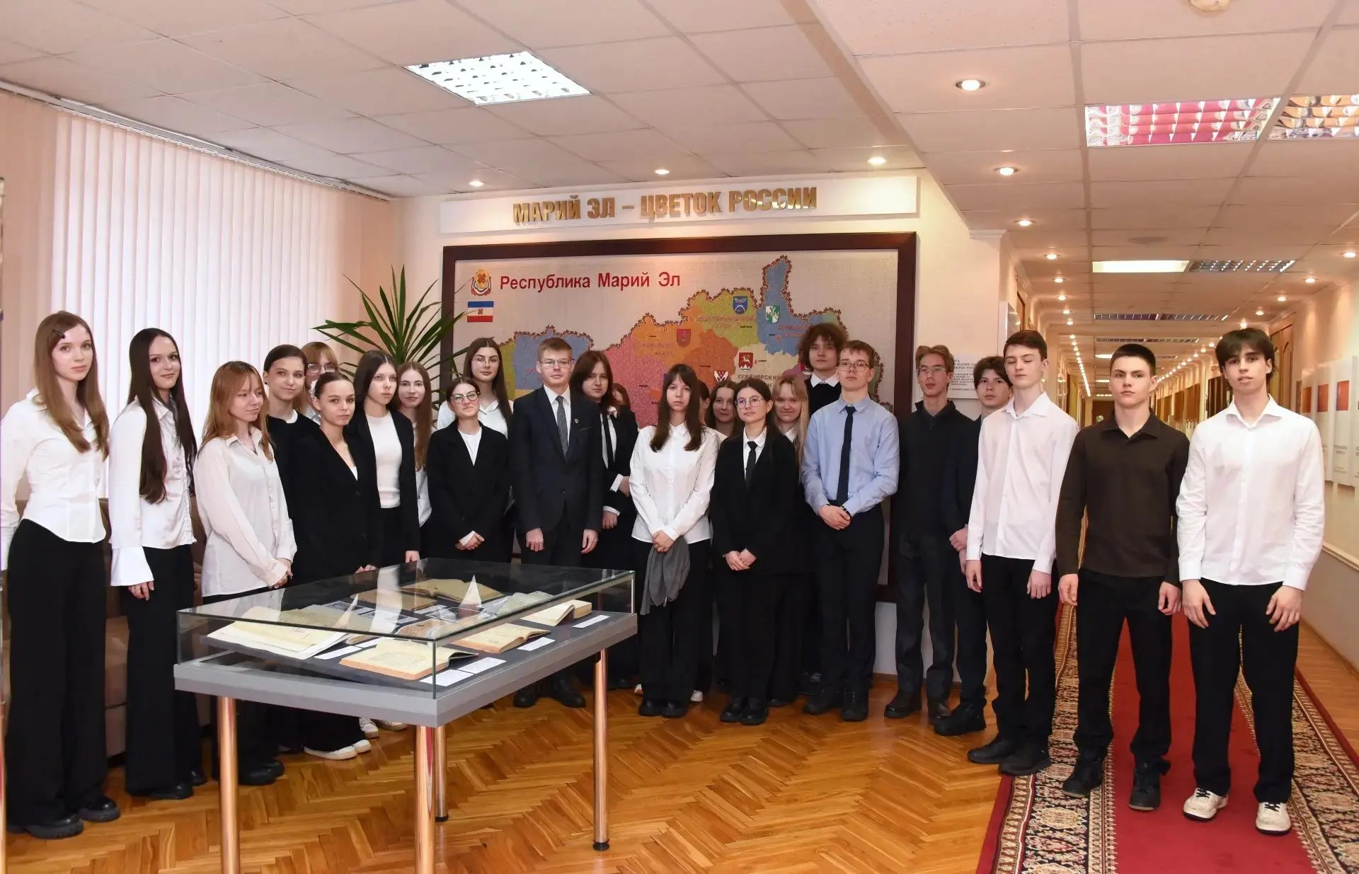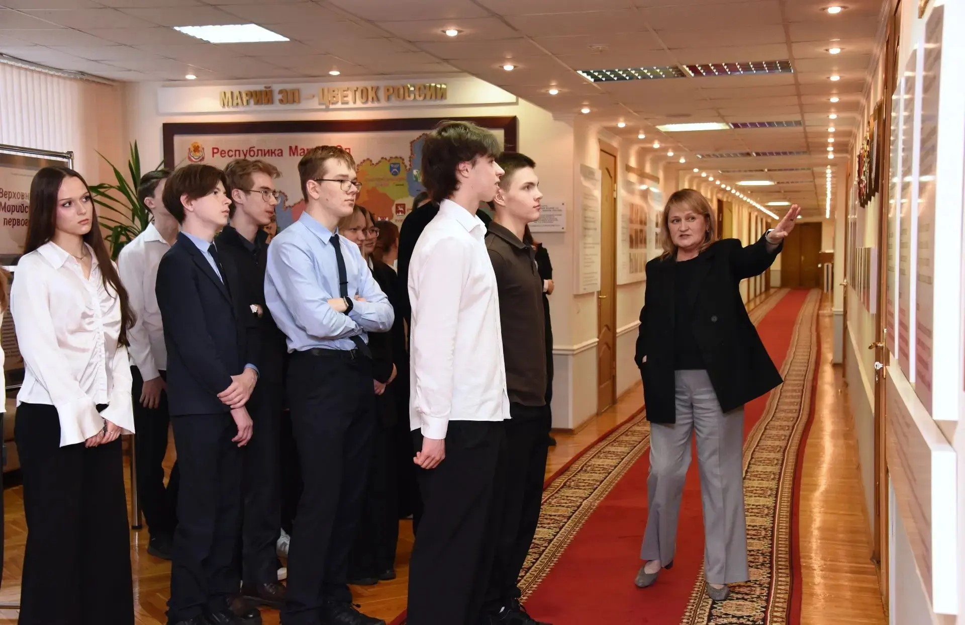 Гимназисты также увидели портретную галерею руководителей Верховного Совета Марийской АССР – Государственного Собрания Республики Марий Эл, уникальную карту «Марий Эл – цветок России», выполненную в технике ручной национальной вышивки, и фотогалерею о деятельности депутатов всех восьми созывов.