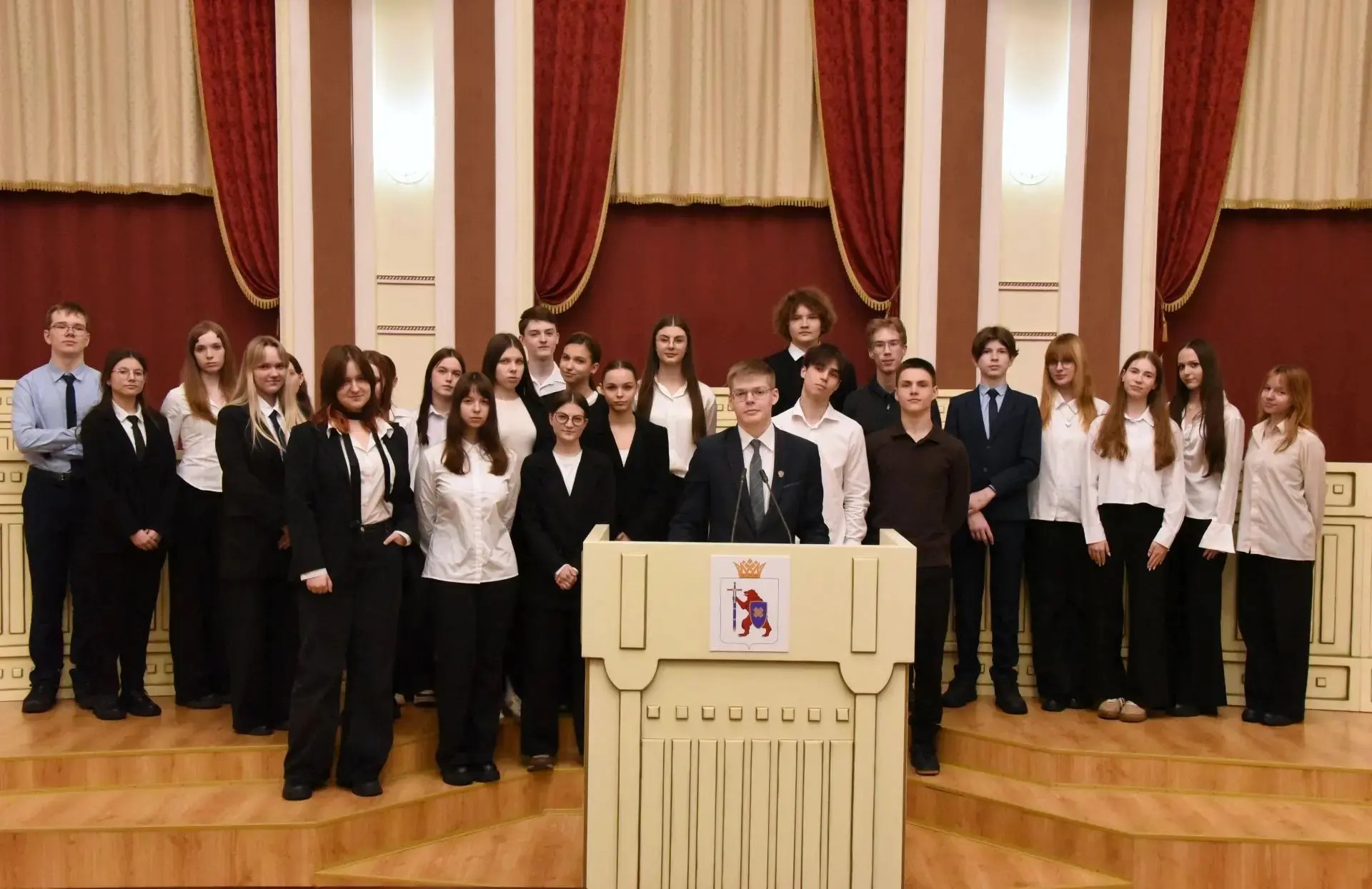 Кульминацией встречи стало посещение зала заседаний Дворца Конгрессов Республики Марий Эл. Каждый из ребят смог на мгновение почувствовать себя депутатом, принимающим законы.