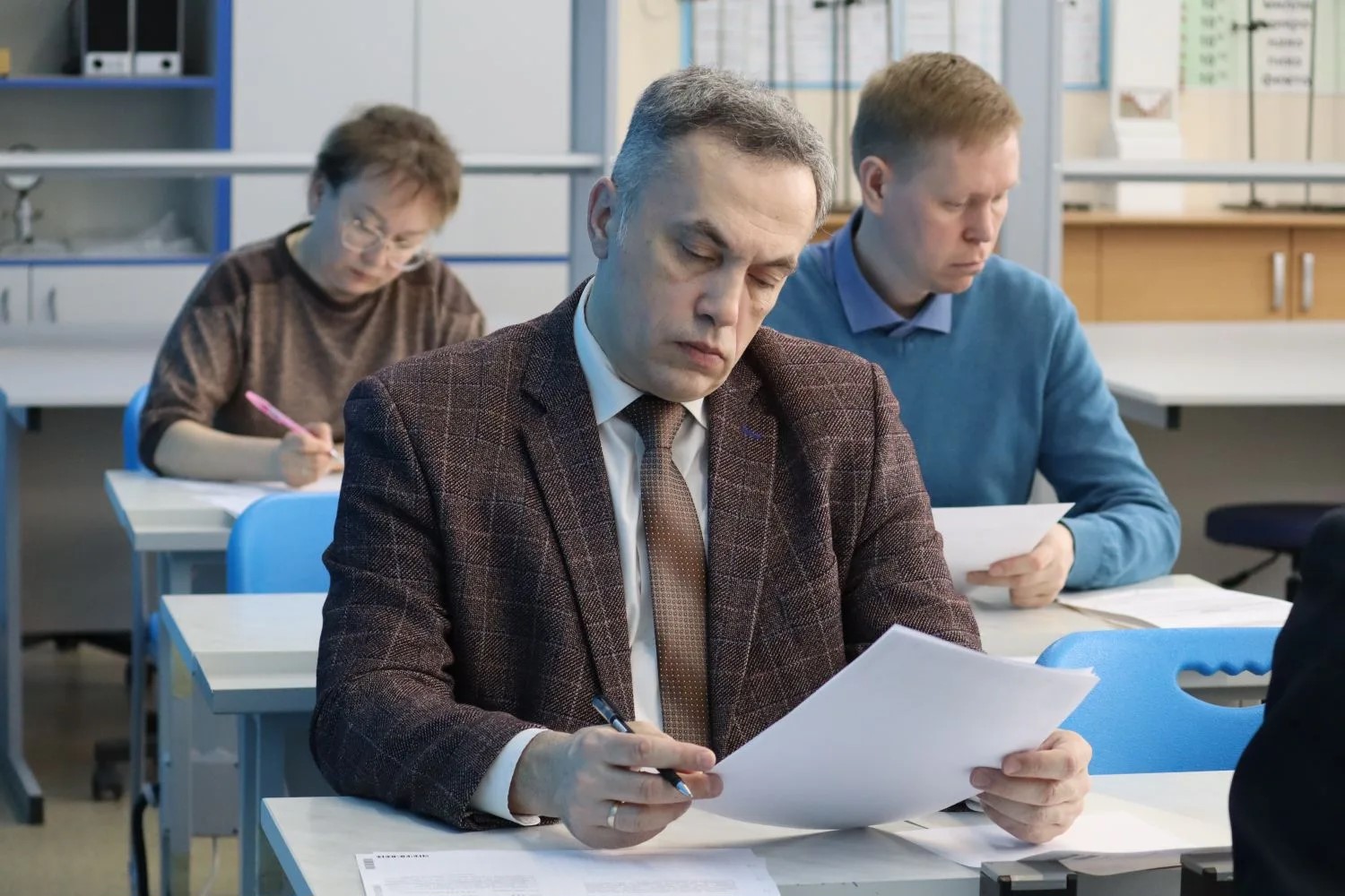 Вместе с ней в течение 45 минут над заданиями ЕГЭ работали родители одиннадцатиклассников, представители общеобразовательных организаций республики, общественные деятели Марий Эл.