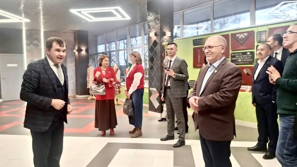 Делегация также побывала в полилингвальной многопрофильной школе села Новые Татышлы. Она открыта 1 сентября 2025 года на базе существующего учебного заведения после капремонта по федеральной программе. В школе созданы все условия для билингвального обучения: уроки ведутся на русском и удмуртском языках, кабинеты и школьная форма оформлены с национальным удмуртским орнаментом. Гости высоко оценили уровень организации образовательного процесса, ознакомились с календарно-обрядовыми традициями удмуртов – «Вӧй келян» («Проводы Масленицы»), «Елин» («Ильин день») и «Бусылы вазиськон» («Праздник первой борозды»).